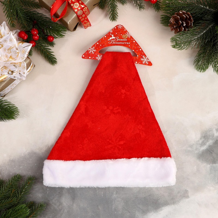 Красный новогодний колпак с декоративным узором в виде веточек создаёт атмосферу зимнего праздника и дополняет образ Деда Мороза на торжествах. Размер 29×38 см обеспечивает удобство и комфорт при ношении на новогодних мероприятиях.