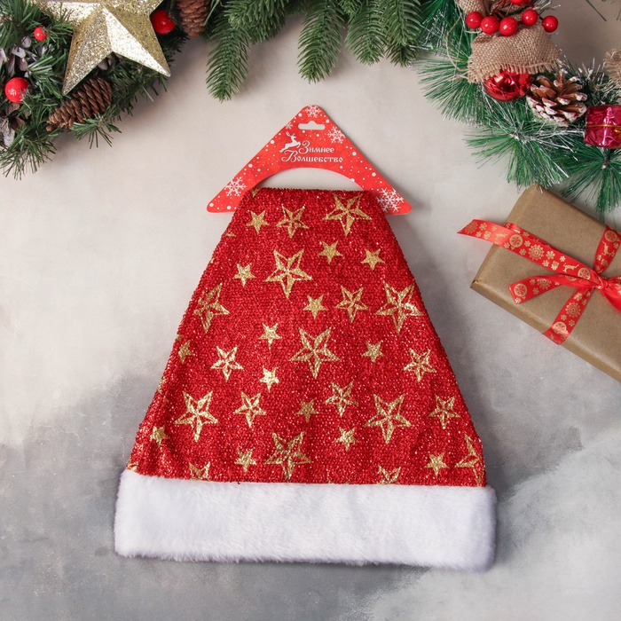 Текстильный новогодний колпак с ярким красным оттенком и праздничным рисунком с персонажами – Дедом Морозом, гномом, эльфом и клоуном. Этот аксессуар помогает создать атмосферу веселья и объединяет гостей на новогодних мероприятиях.