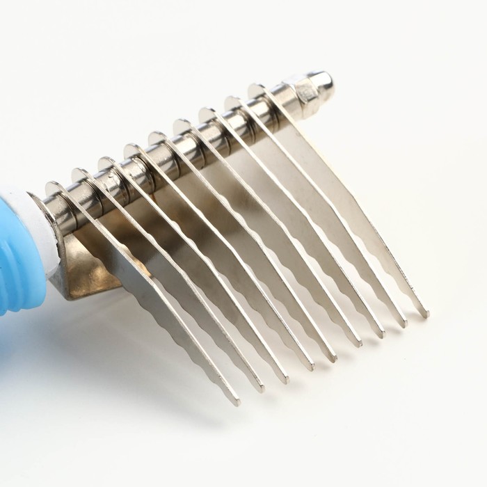 Колтунорез боковой "Комфорт" 9 лезвий, нескользящая резиновая ручка, голубой