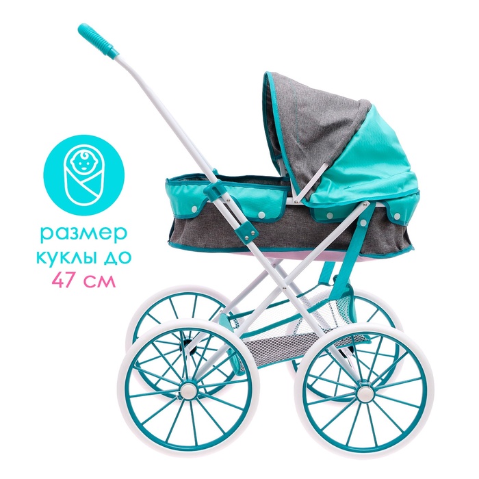 - Металлический каркас обеспечивает надежность конструкции, а мягкие ткани и материал колес EVA гарантируют комфорт для куклы.