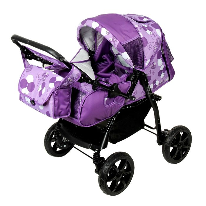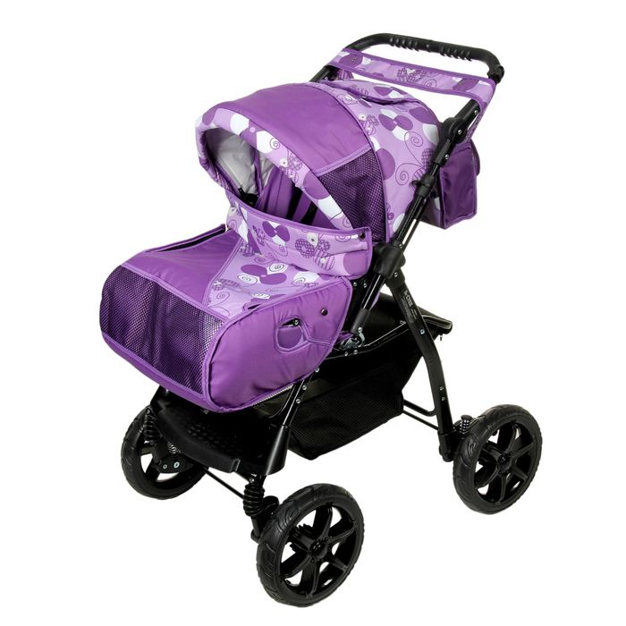 Коляска-трансформер «Гном», пластиковые колёса, оттенки фиолетового, рисунок МИКС