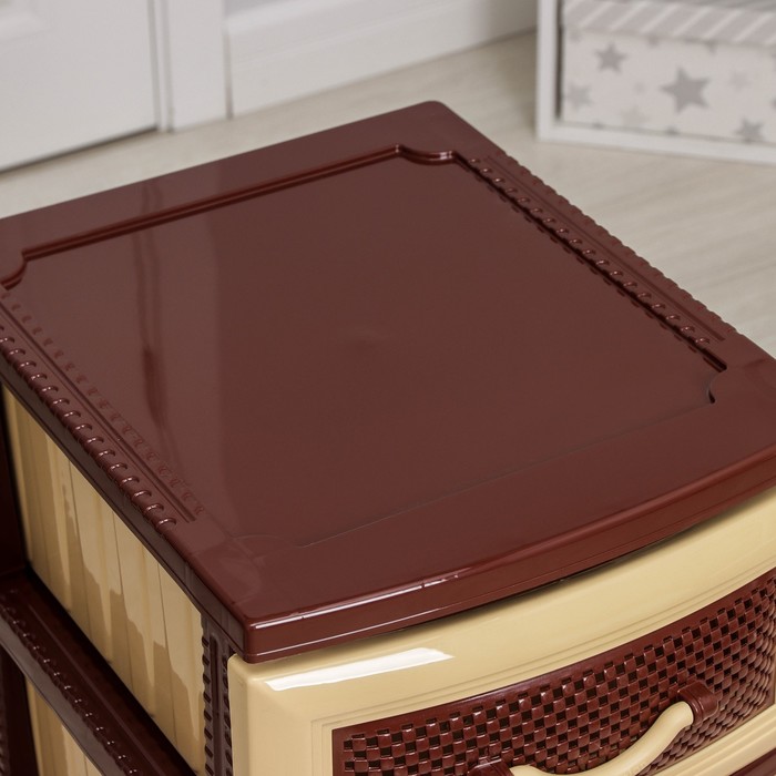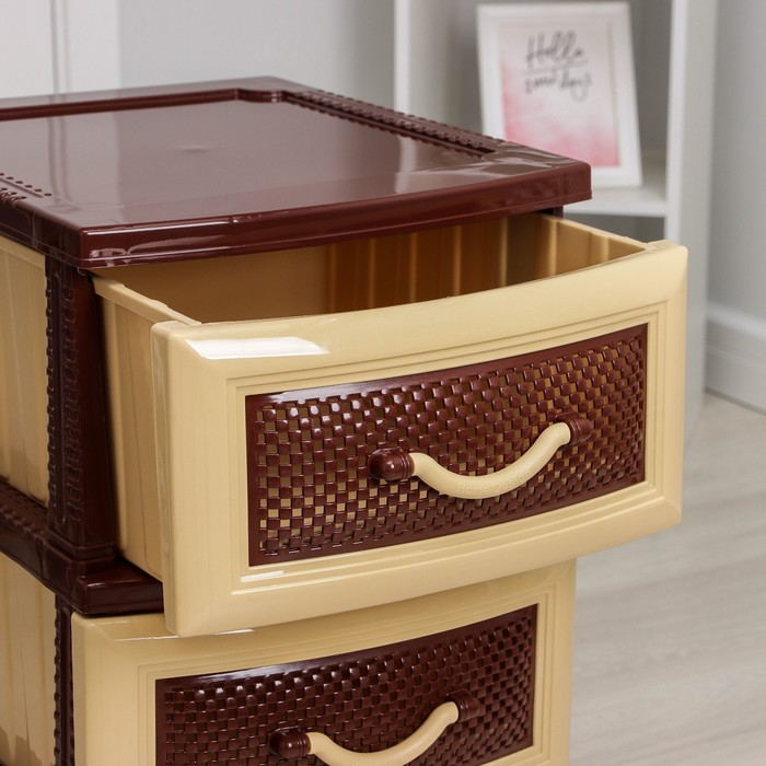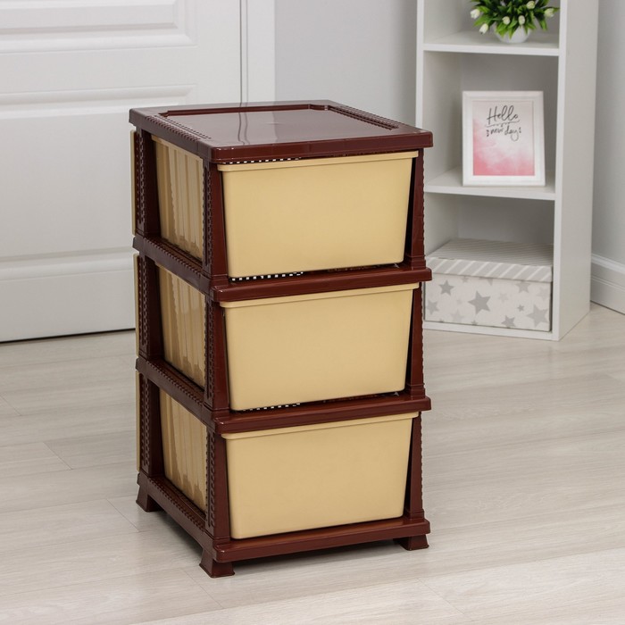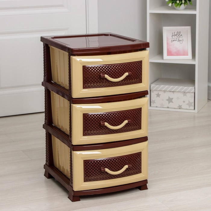 - В нём есть три объёмных легко выдвигающихся ящика.