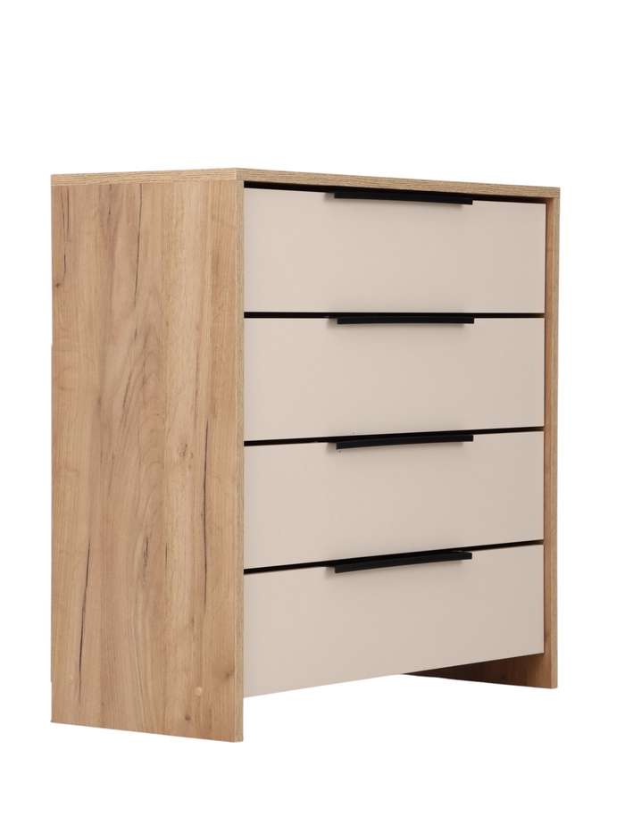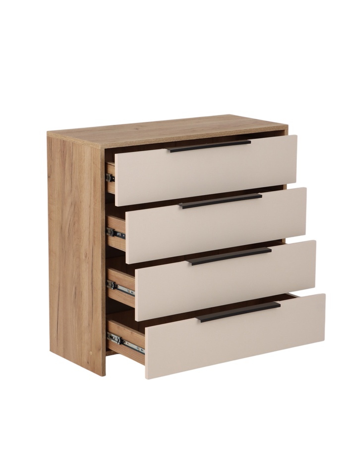 Компактный комод для хранения одежды, белья и бытовых предметов. Подходит для размещения в спальне, гостиной или прихожей, обеспечивая удобную организацию хранения и рациональное использование пространства.