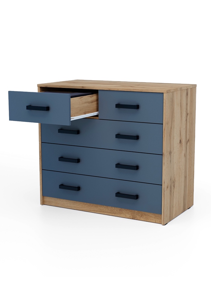 Комод 5 ящиков, 900х480х800 – стильный и вместительный. Удобный вариант мебели для хранения белья, постельных принадлежностей и личных вещей. Данная модель выглядит компактно и визуально не загромождает пространство. Она позволит вместить большое количество вещей. Ящики изделия выдвигаются полностью и плавно, не упираясь в стенки. Тумба универсального цвета без труда подойдёт под спальный гарнитур и оформление комнаты.