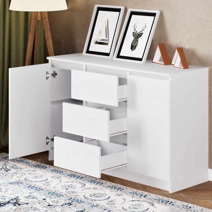 - Декор интерьера: белый цвет и современная форма комода добавят легкости и свежести вашей комнате.
