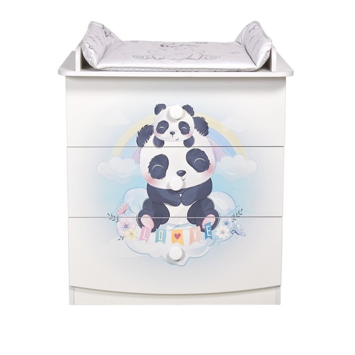 - Топ комода оснащён зоной для пеленания, ограждённой 2 бортиками со скруглёнными углами, что гарантирует удобство и безопасность при использовании