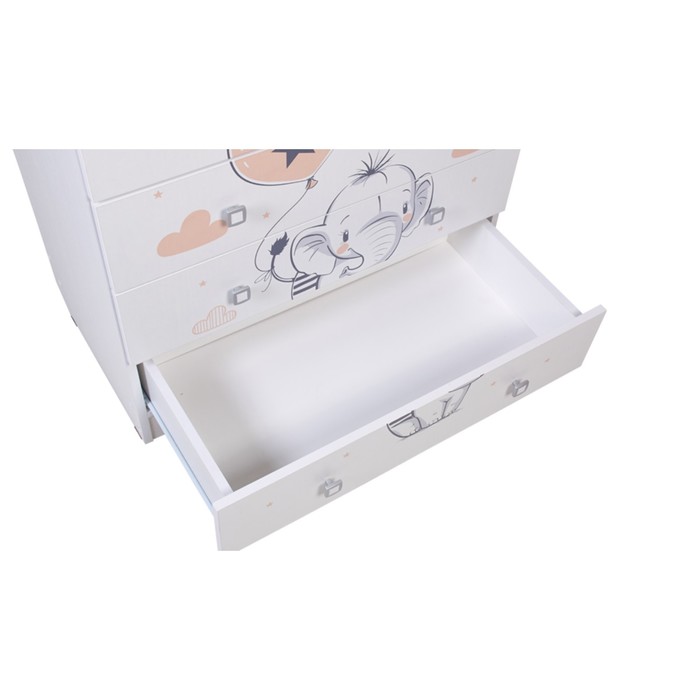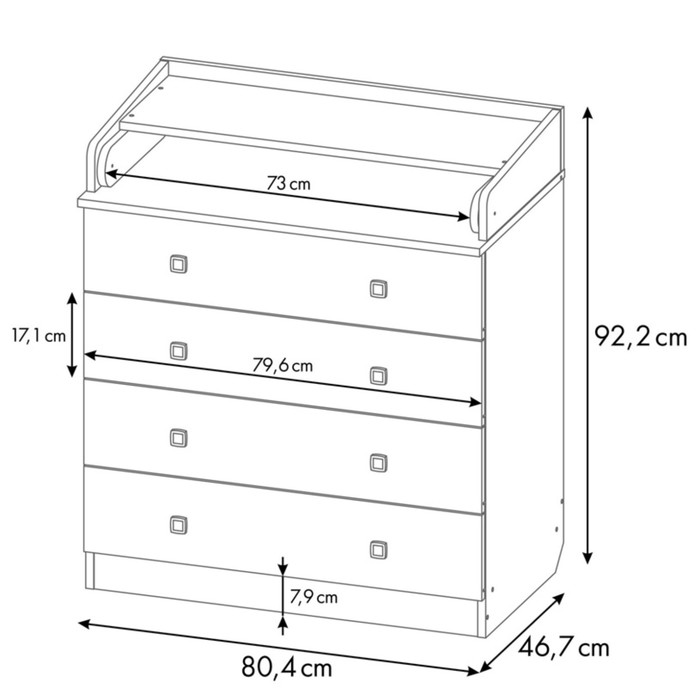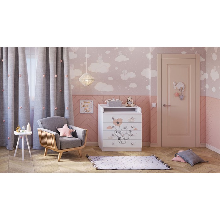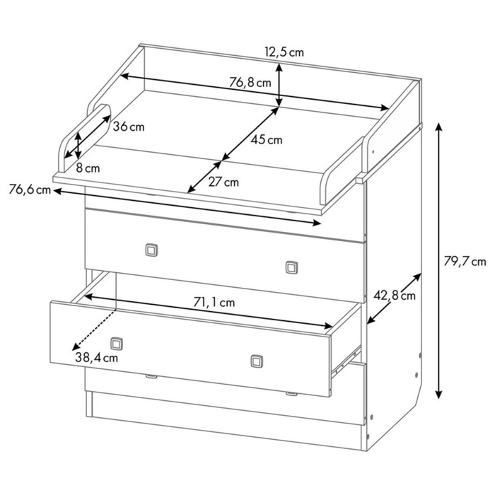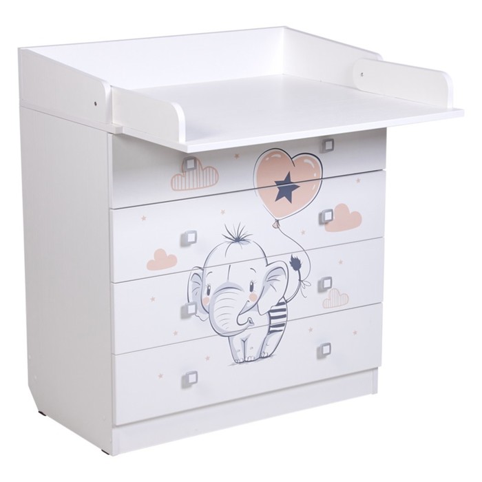 Комод имеет откидную пеленальную поверхность, которая снимается.