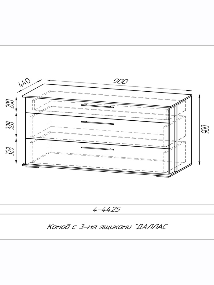 Комод напольный «ДАЛЛАС», 3 ящика, 900×440×900 мм, цвет графит/белый