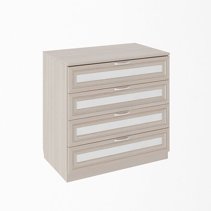 Комод светлой расцветки впишется практически в любой интерьер. Эта модель прослужит вам долго. Четыре вместительных выдвижных ящика вместят в себя одежду ребёнка, текстиль и прочие принадлежности. На поверхность мебели вы сможете поставить красивые часы, фоторамку или вазу с цветами.