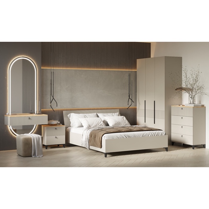 Обладает современным дизайном и высокой функциональностью. Состоит из двух частей: дубового оттенка и бежевого, что придает ему уникальное и привлекательное внешний вид.