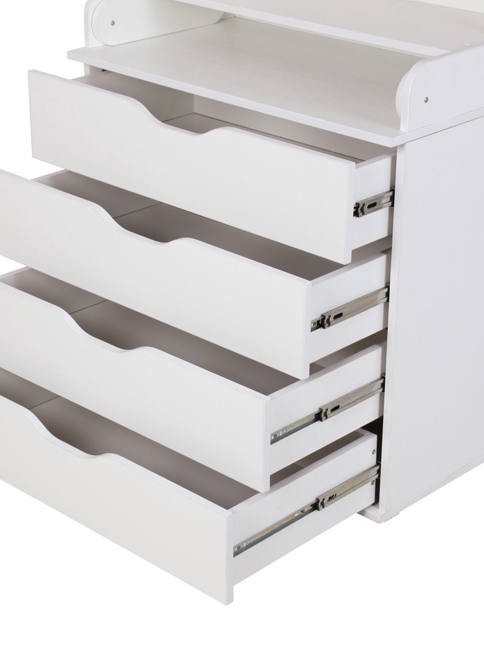 Комод имеет 4 вместительных ящика на шариковых направляющих, в которых удобно хранить детские вещи, аксессуары и игрушки.