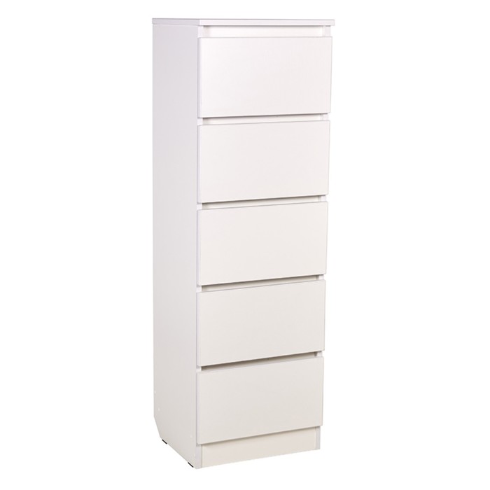 Компактная и удобная модель с 5 ящиками на шариковых направляющих полного выдвижения идеально подойдет для детской комнаты, взрослой спальни, прихожей. Изделие произведено из высококачественной ЛДСП и облицовано противоударной кромкой 2 мм