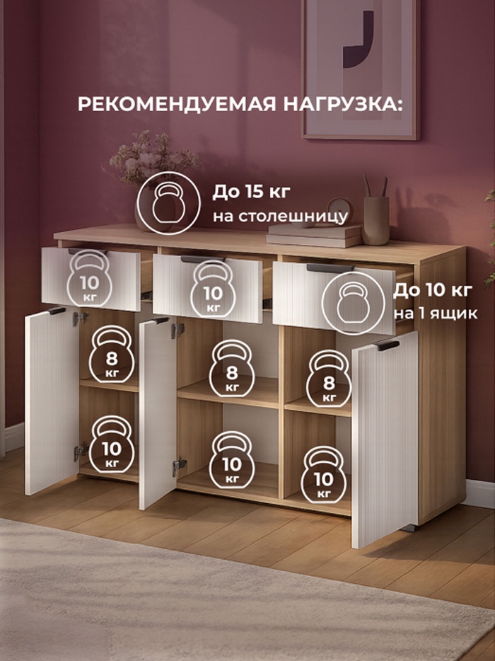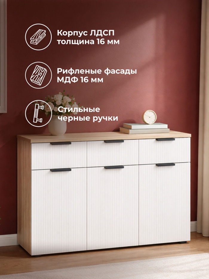 Комод Стокгольм КМ03-1200 дуб сонома / line софт пломбир