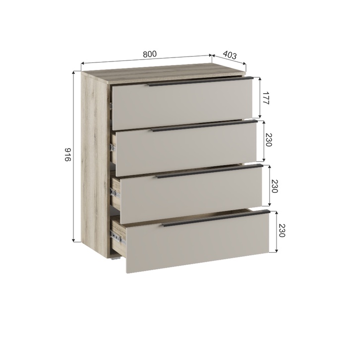 Комод «Заря», 800×403×916 мм, цвет дуб делано/кашемир