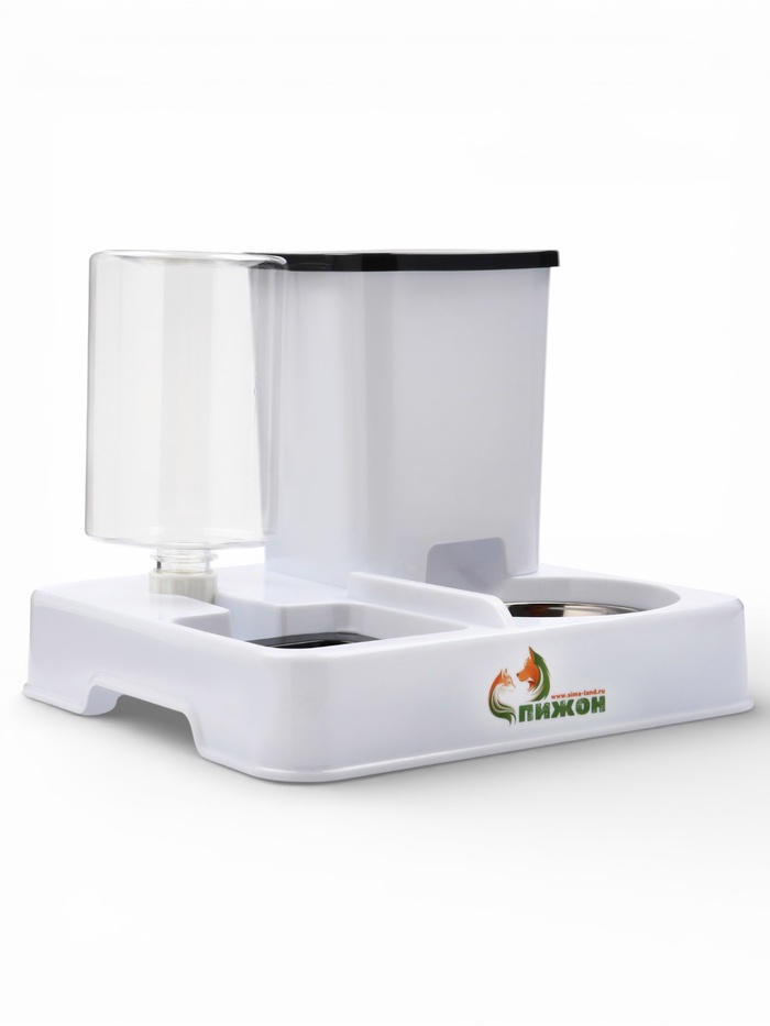 Еда и вода под контролем — даже когда вас нет дома. Автоматический комплекс кормушка + поилка объединяет два резервуара с надёжными мисками в одном белом корпусе. Подходит для кошек и мелких собак, обеспечивая свежий доступ к пище и воде на 2–4 дня.