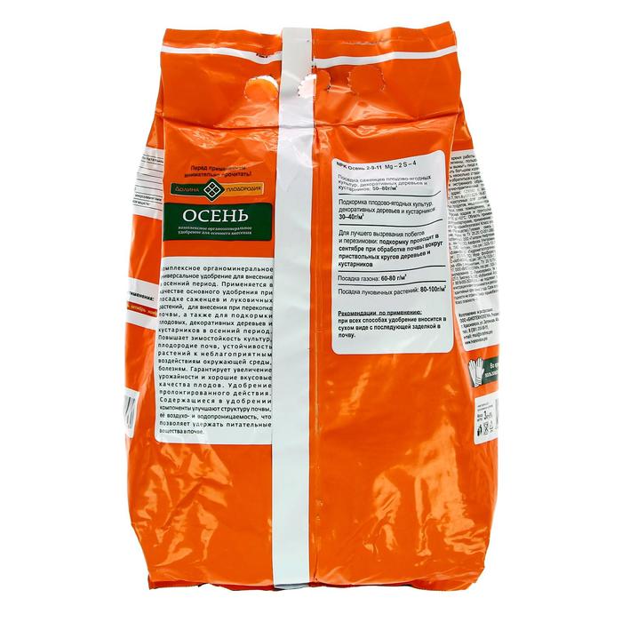 Комплексное органо-минеральное удобрение «Долина плодородия» предназначено для внесения в осенний период. Применяется в качестве основного удобрения при посадке саженцев и луковичных растений, для внесения при перекопки почвы в осенний период, а так же для подкормки плодовых, декоративно-лиственных деревьев и кустарников в осенний период.