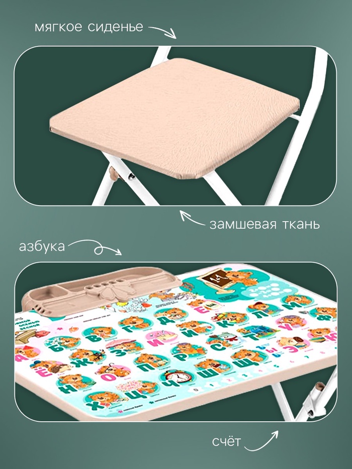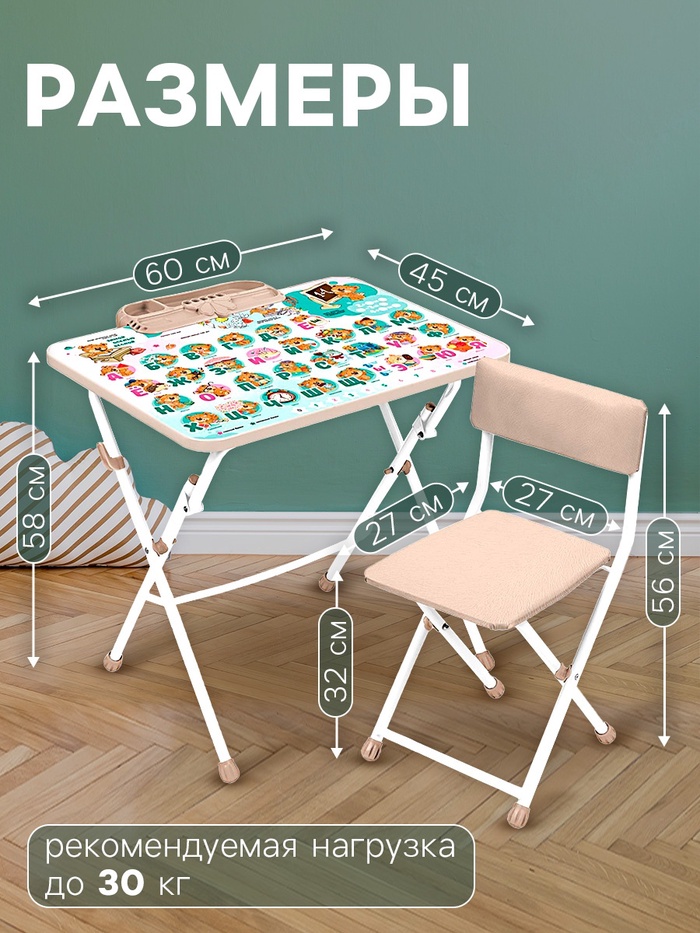 - Правильная осанка: Высота стула и стола соответствует росту до 145 см. Спинка стула поддерживает естественное положение позвоночника во время занятий.