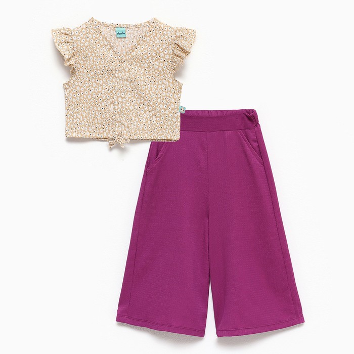 Комплект для девочки, цвет бежевый/фиолетовый, рост 140 см
