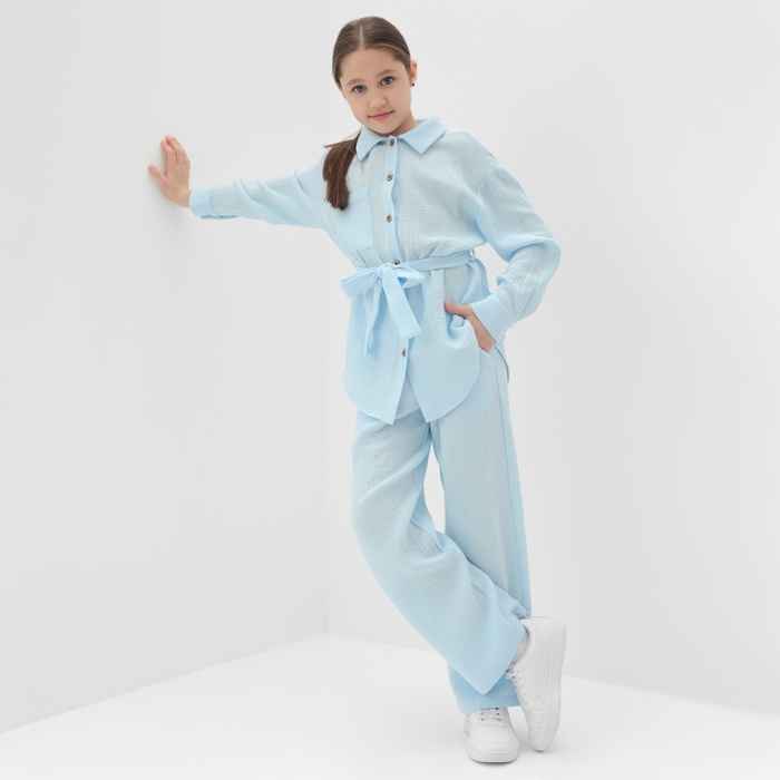 Комплект для девочки (рубашка и брюки) MINAKU, голубой, рост 152 см