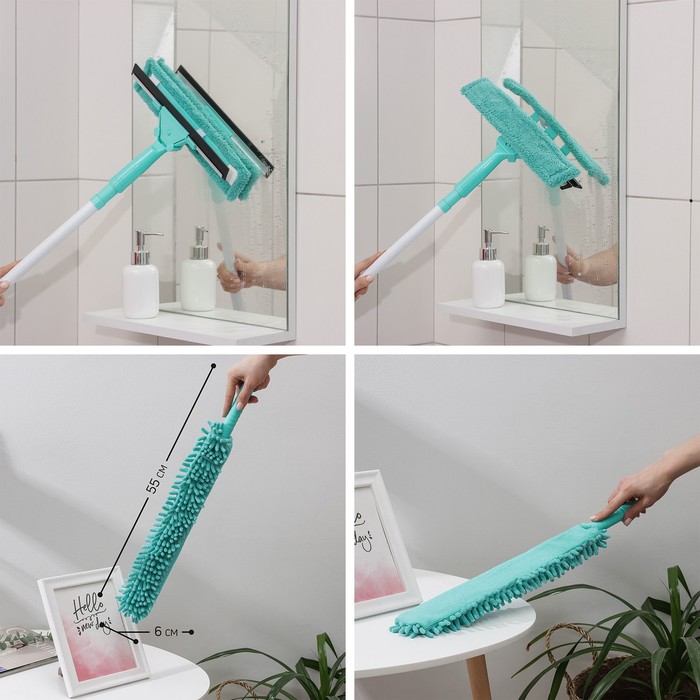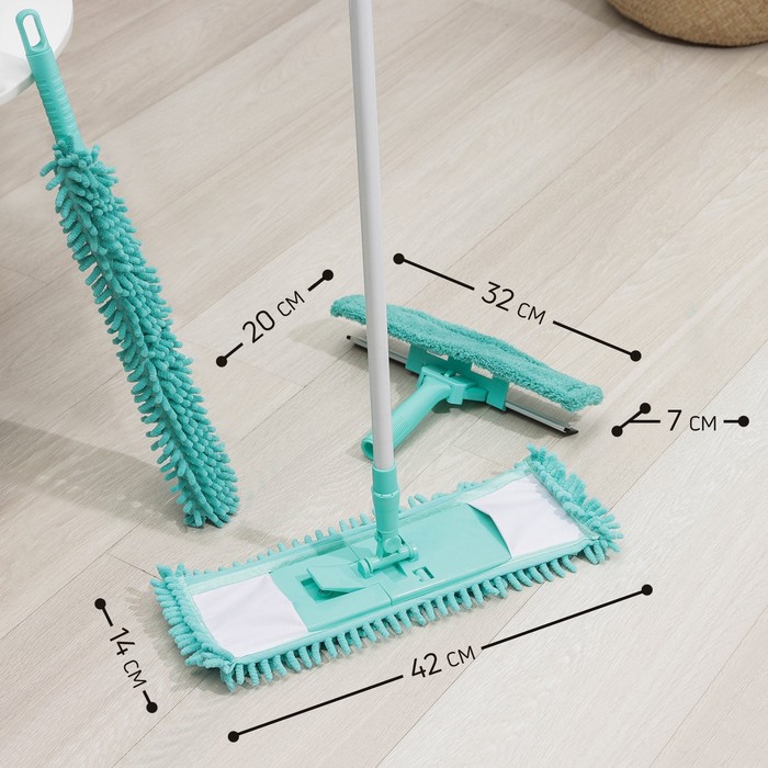 Комплект для уборки Raccoon «Универсальный», 4 предмета, окномойка, швабра, щётка для пыли и черенок