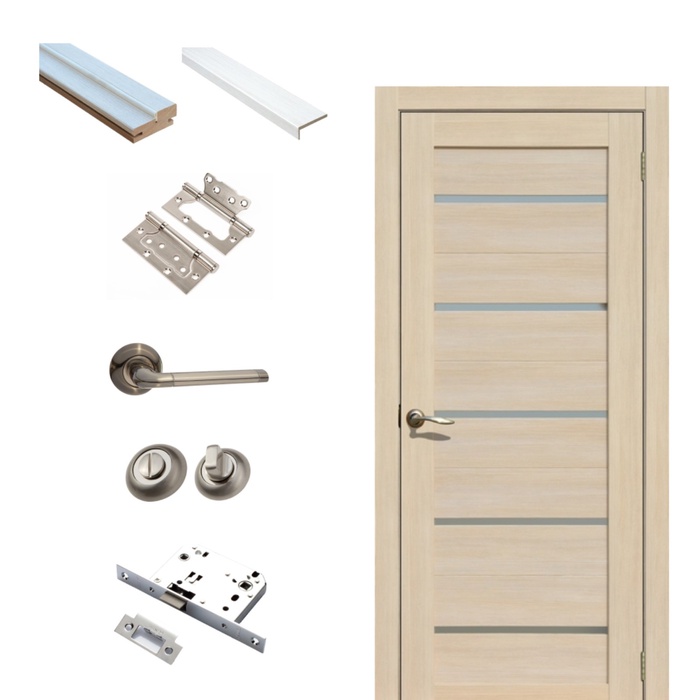 Комплект двери для санузла 206, со стеклом мателюкс, 600×2000×36 мм, экошпон, цвет ясень латте