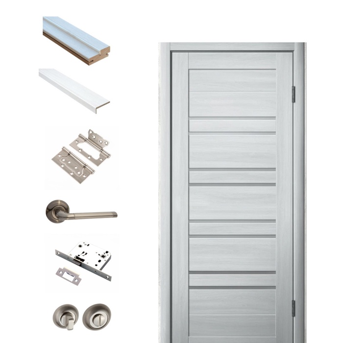 Комплект двери для санузла 282, со стеклом мателюкс, 700×2000×36 мм, экошпон, цвет ясень пепельный