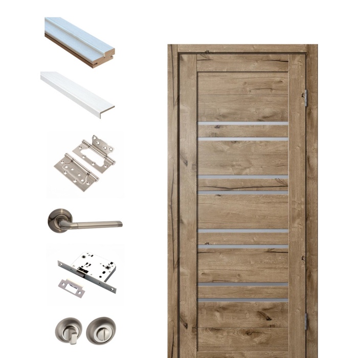 Комплект двери для санузла 282, со стеклом мателюкс, 900×2000×36 мм, экошпон, цвет дуб пацифик