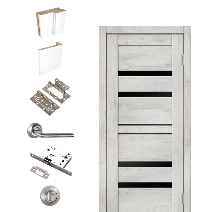 Комплект двери для санузла LINE 6, со стеклом, 700×2000 мм, экошпон, цвет ель альпийская/лакобель чёрный