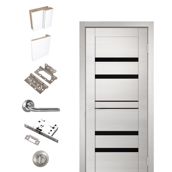 Комплект двери межкомнатной LINE 6, 700×2000 мм, экошпон, цвет ясень снежный/лакобель чёрный
