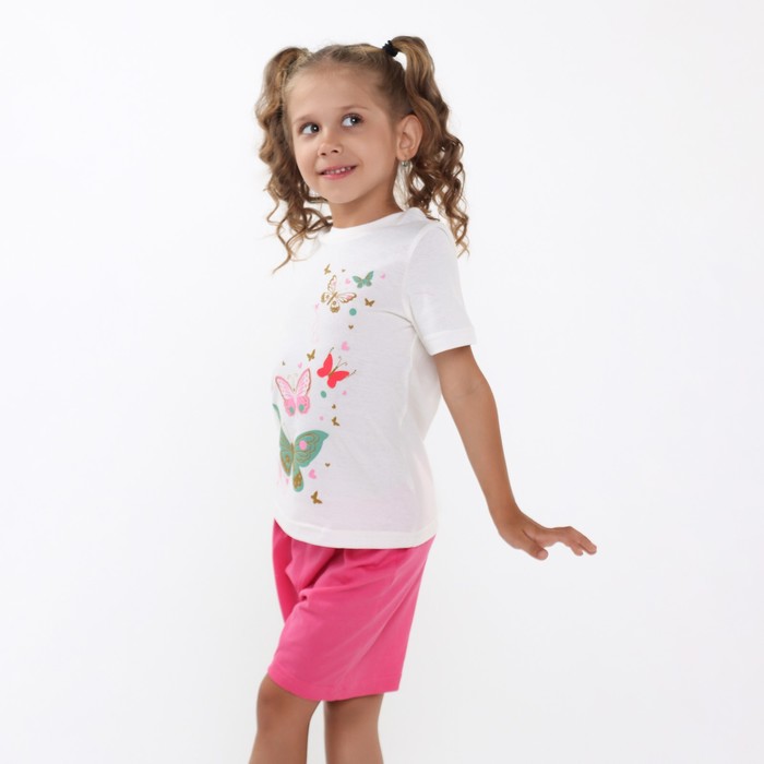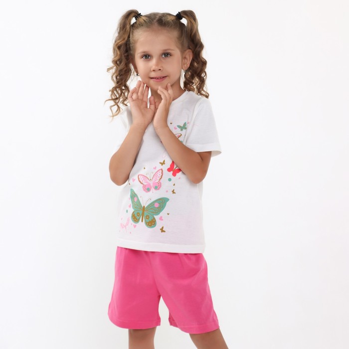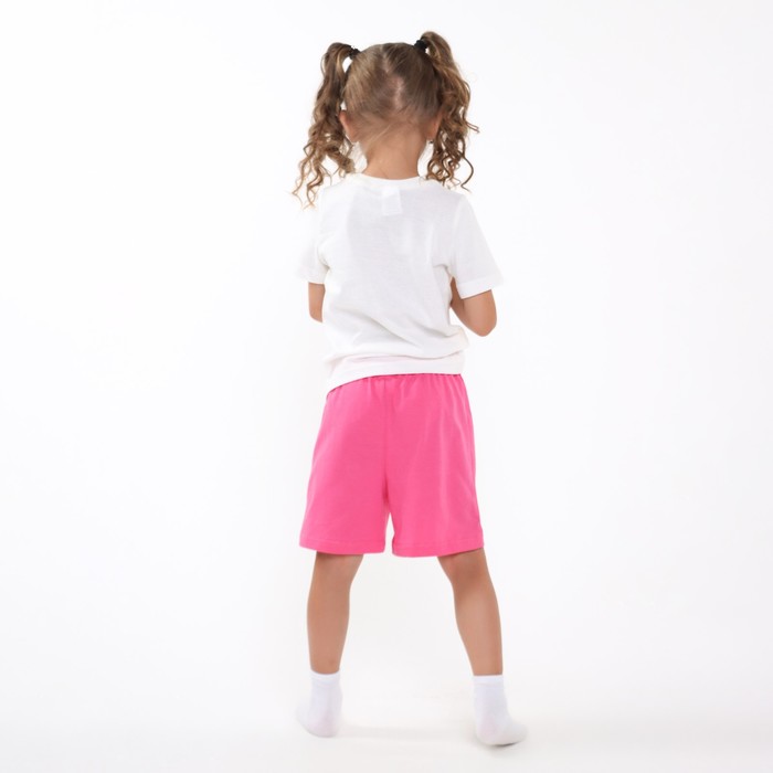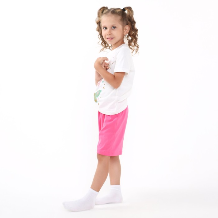 Комплект (футболка, шорты) для девочки, цвет молочный/розовый, рост 128-134 см (8 лет)