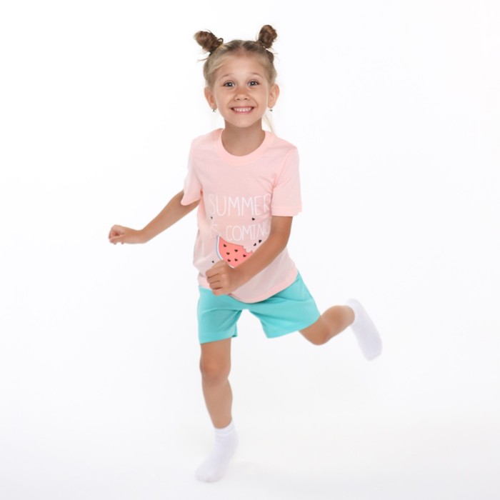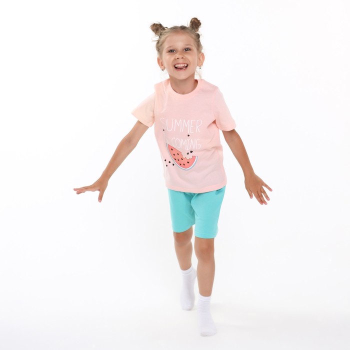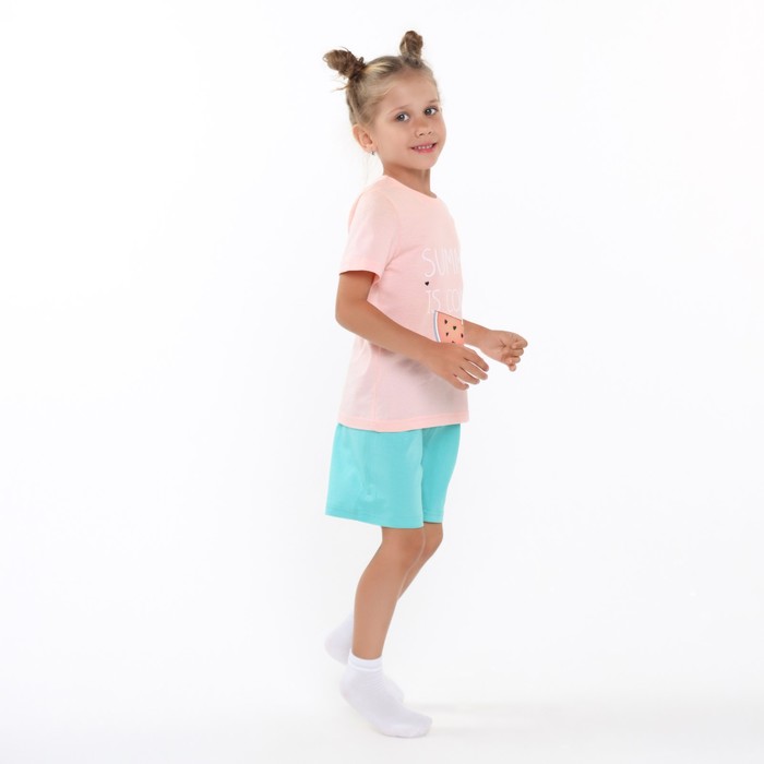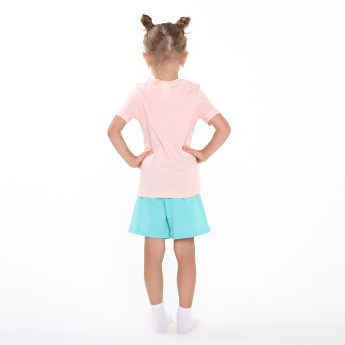 Комплект (футболка, шорты) для девочки, цвет персик/бирюзовый, рост 98-104 см (3 года)