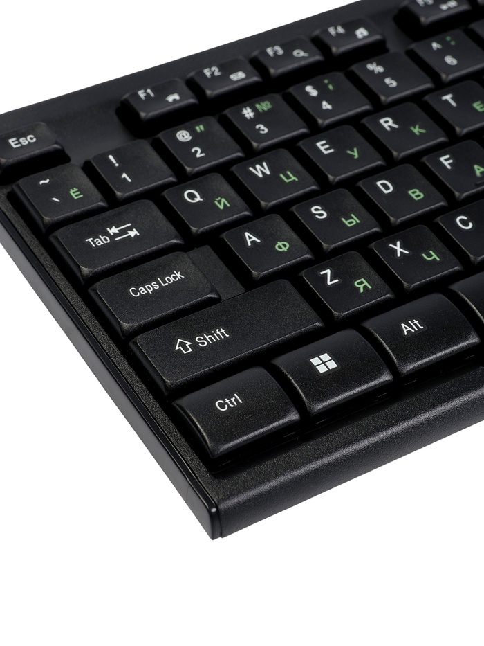Этот комплект в элегантном чёрном цвете объединяет клавиатуру и мышь, предлагая надёжное решение для повседневных задач. Мембранная клавиатура обеспечивает тихую работу, а оптическая мышь с сенсором 2400 dpi гарантирует точное управление курсором.