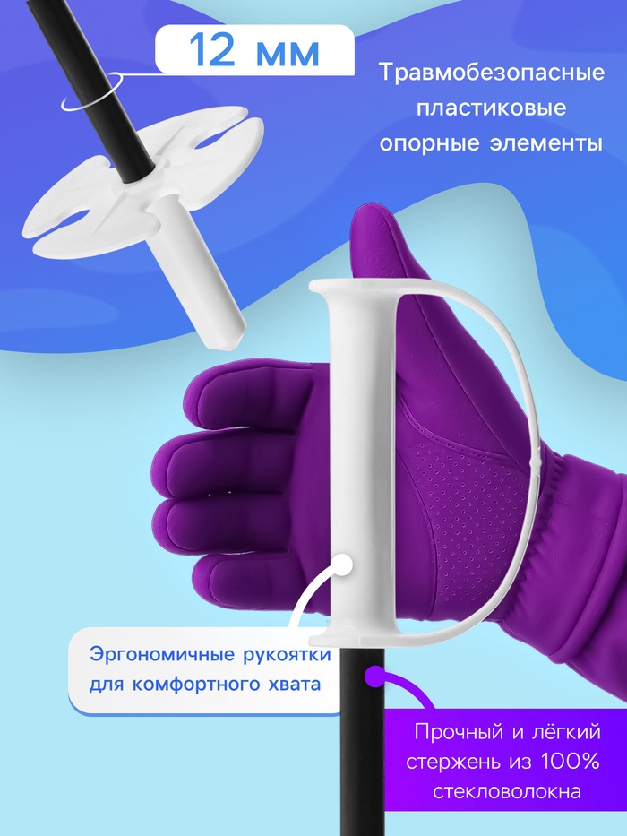 Палки имеют пластиковые травмобезопасные наконечники, это обеспечивает защиту во время катания.
