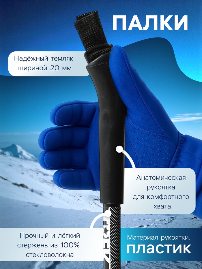 Материал лыжных палок — стеклопластик — гарантирует спортсмену надёжность и прочность всей конструкции, увеличивая срок эксплуатации. Большим плюсом в данной модели является простота подготовки, предварительная обработка не требуется, достаточно встать и поехать.