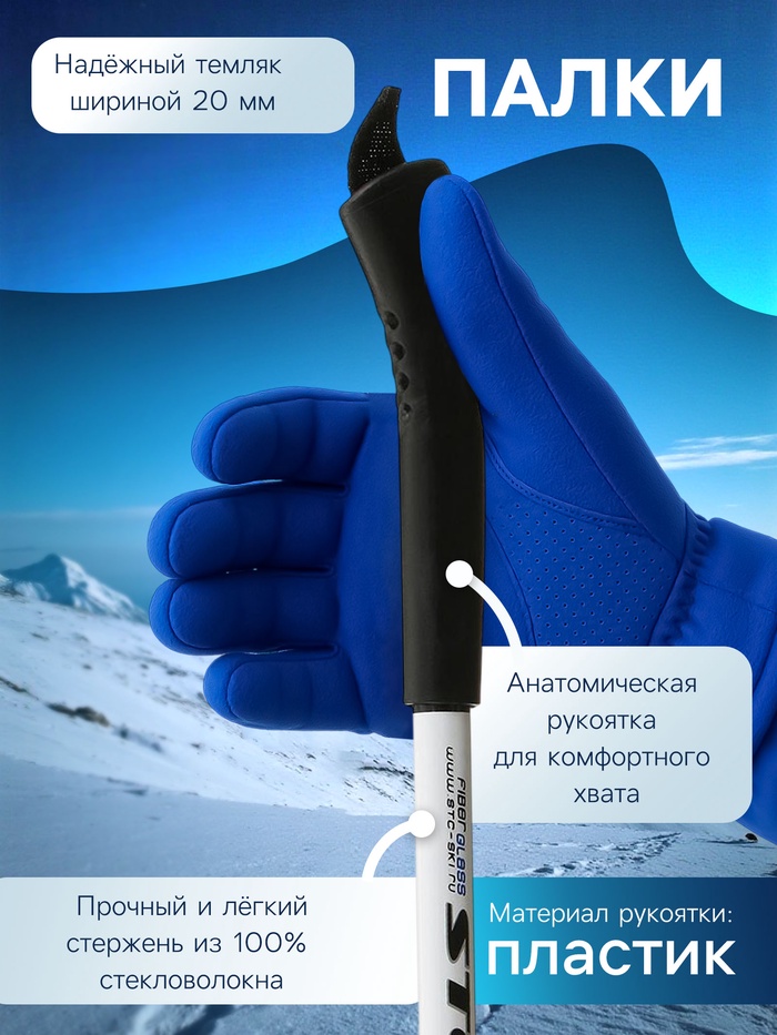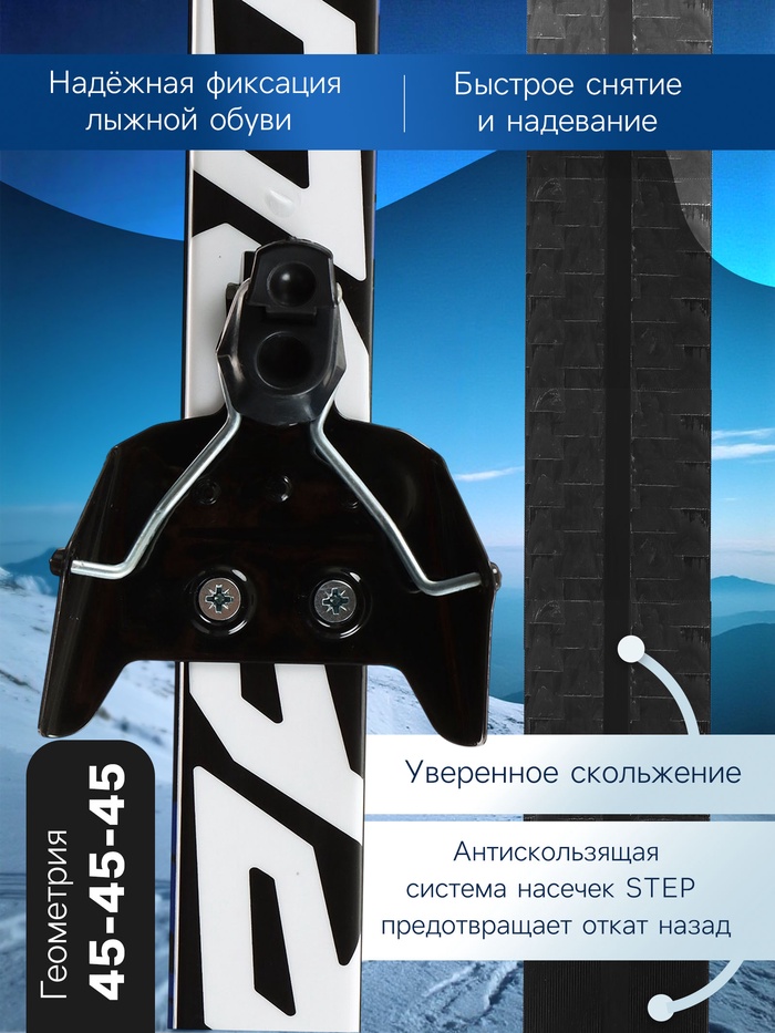 Комфорт и удобство использования, его обеспечивает антискользящая насечка, которая также улучшает сцепление со снегом.