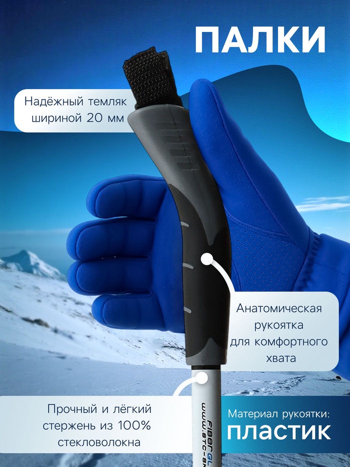 Материал лыжных палок — стеклопластик — гарантирует спортсмену надёжность и прочность всей конструкции, увеличивая срок эксплуатации. Большим плюсом в данной модели является простота подготовки, предварительная обработка не требуется, достаточно встать и поехать.