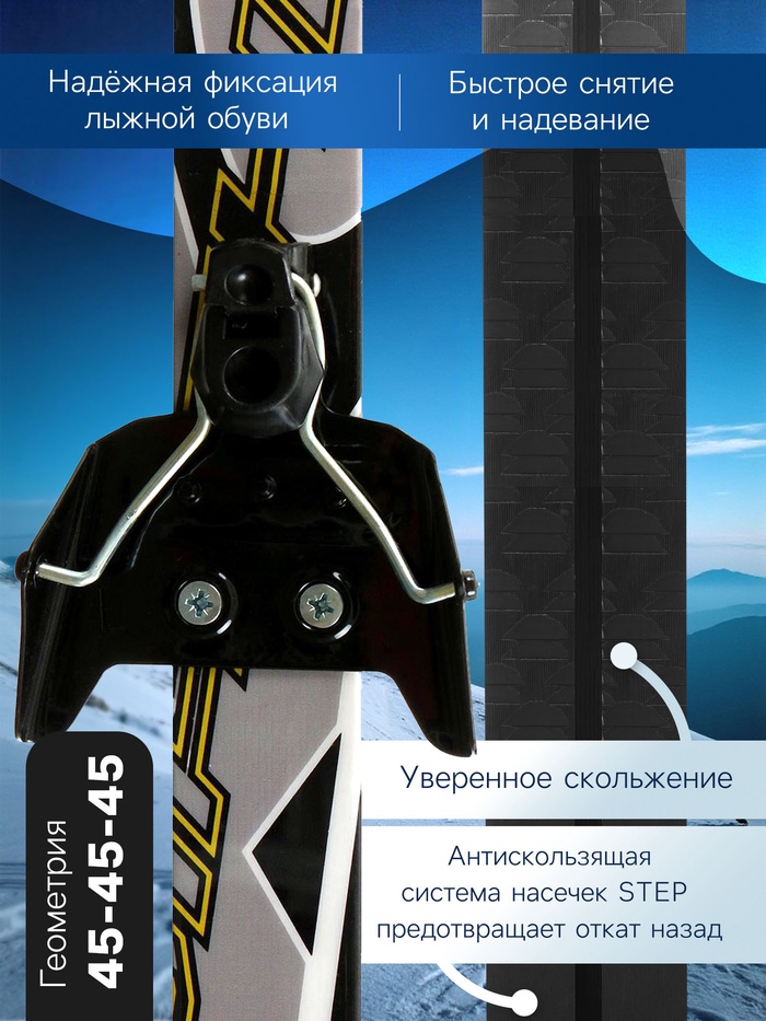 Комфорт и удобство использования, его обеспечивает антискользящая насечка, которая также улучшает сцепление со снегом.