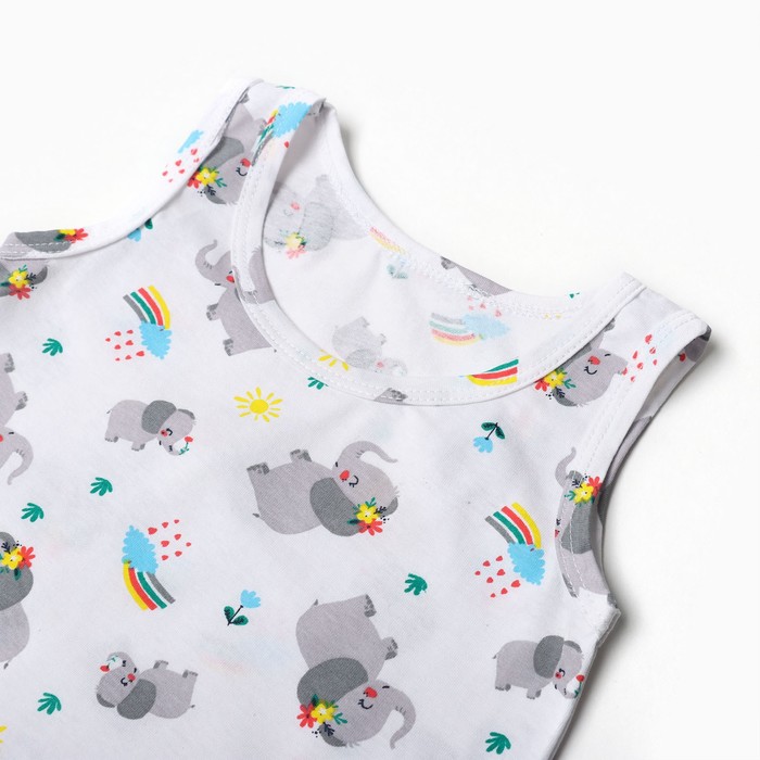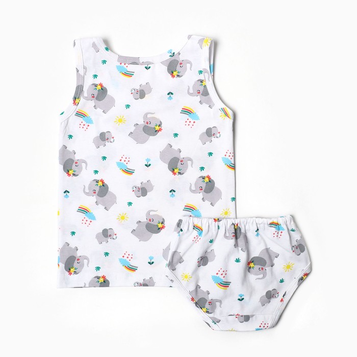 Комплект (майка, трусы) для девочки, цвет белый/слоники, рост 104 см