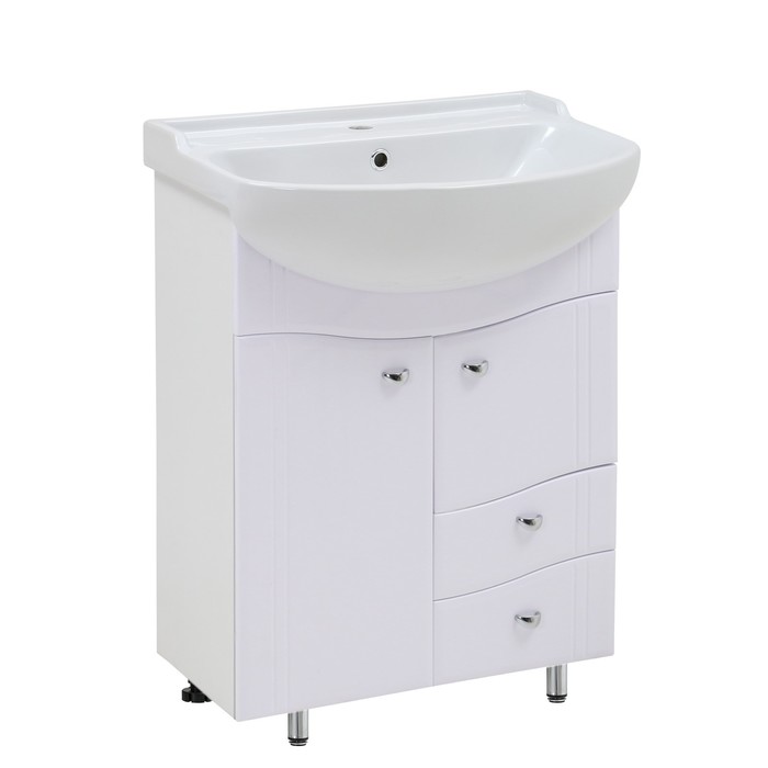 Тумба с раковиной «Тура» — стильное и практичное приобретение для ванной комнаты. Как показано на фото, данная модель выполняет функции шкафа для гигиенических принадлежностей.