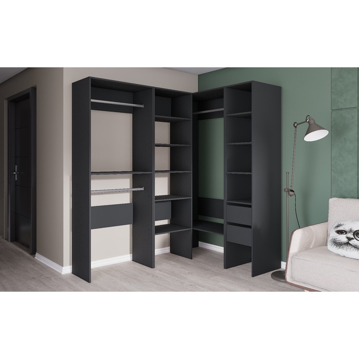 - Гибкая компоновка: модули можно располагать в любом порядке, создавая удобную и логичную систему хранения.