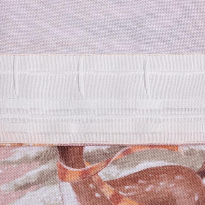 Две бежевые шторы из габардина создадут в вашей спальне или гостиной уютную и светлую атмосферу. Полупрозрачная ткань мягко рассеивает дневной свет, сохраняя ощущение простора. Новогодний рисунок с лесными персонажами добавляет интерьеру тёплую сказочную ноту, которая будет уместна не только в праздники, но и в любое время года.