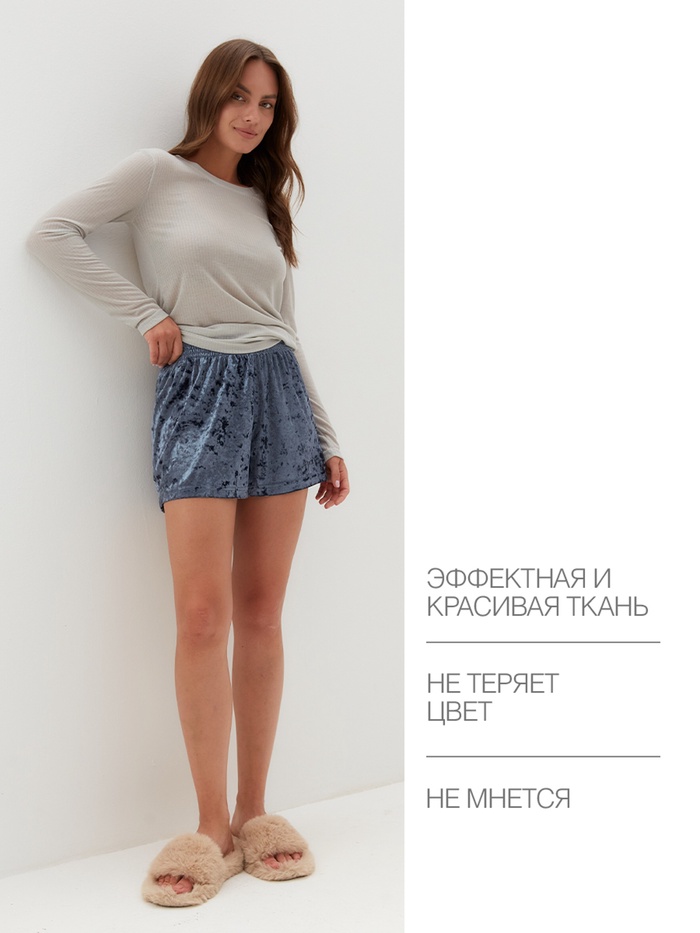 Комплект женский домашний (лонгслив и шорты) KAFTAN «Бархат», размер 44-46, серый/голубой