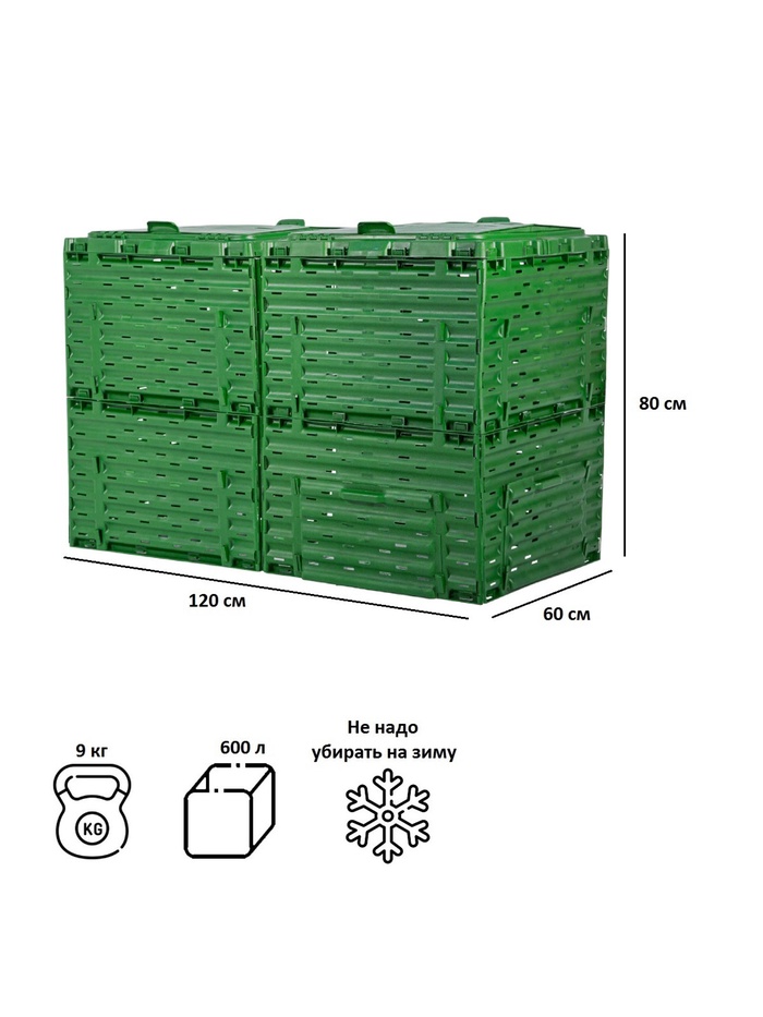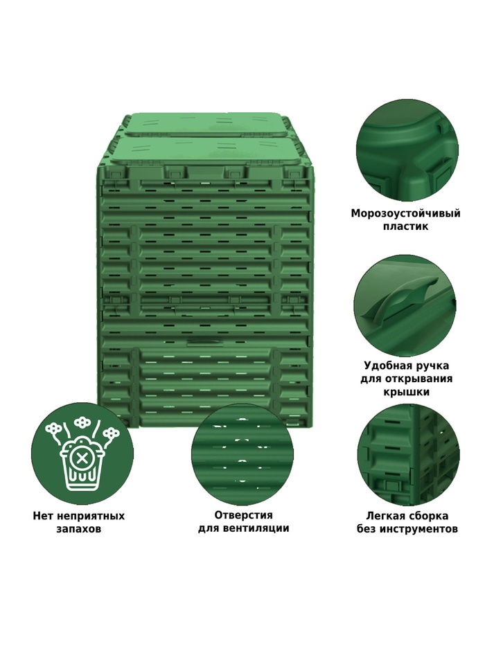 Компостер Piteco с крышкой 600л зелёный