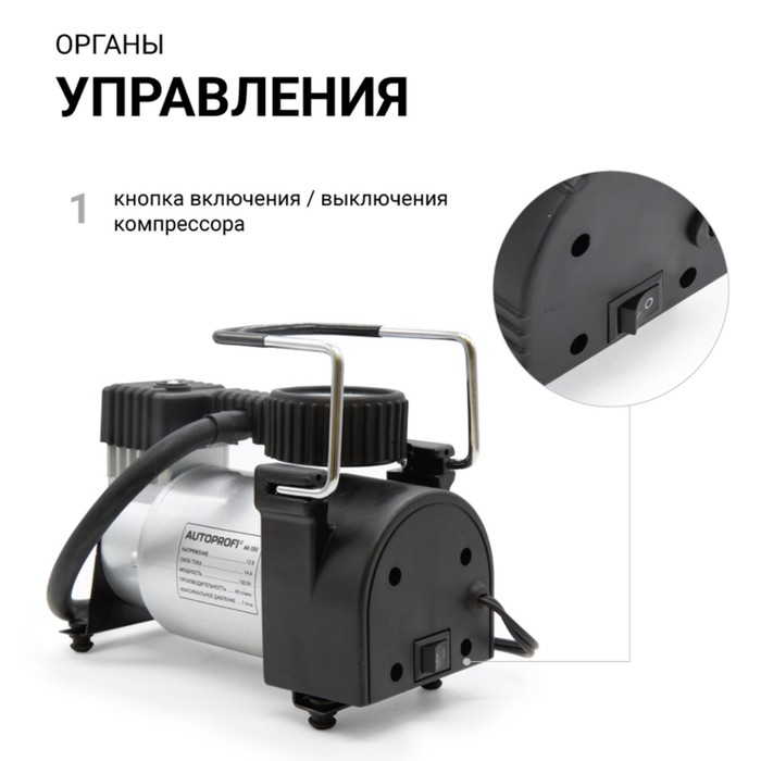 Автомобильный компрессор AUTOPROFI 40 л/мин это удобный и универсальный прибор для регулярного использования, который обеспечит быстрый уход за шинами и надёжность в пути.