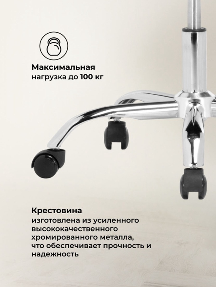 Кресло оснащено удобной спинкой высотой 67 см для поддержки спины и регулируемой высотой сиденья до 119 см, что позволяет легко адаптировать его под индивидуальные параметры пользователя. Компактные габариты и крестовина диаметром 62 см обеспечивают устойчивость и мобильность, а подлокотники с высотой 66–74 см создают дополнительный комфорт для рук.
