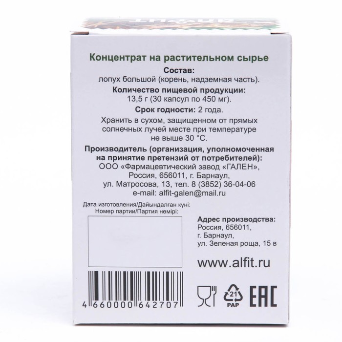 Способ употребления: по 1 капсуле 2 раза в день за 30 минут до еды, с целью профилактики - по 1 капсуле в день