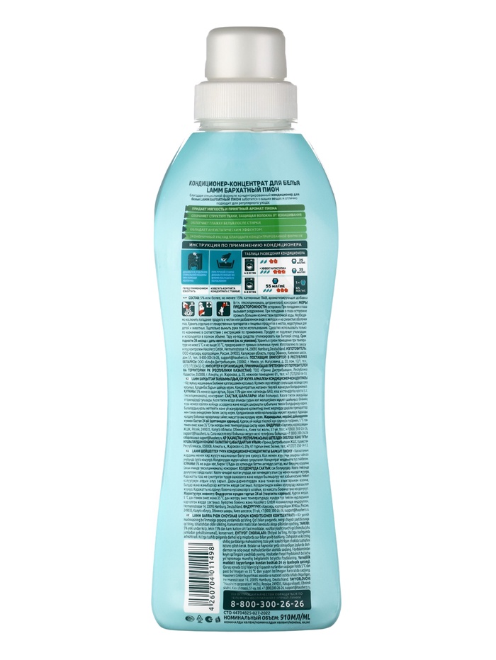 Кондиционер для белья LAMM Бархатный пион, 910 мл