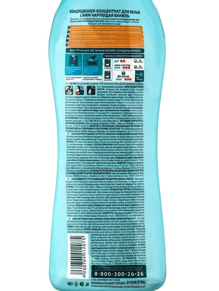 Кондиционер для белья LAMM Чарующая ваниль, 910 мл