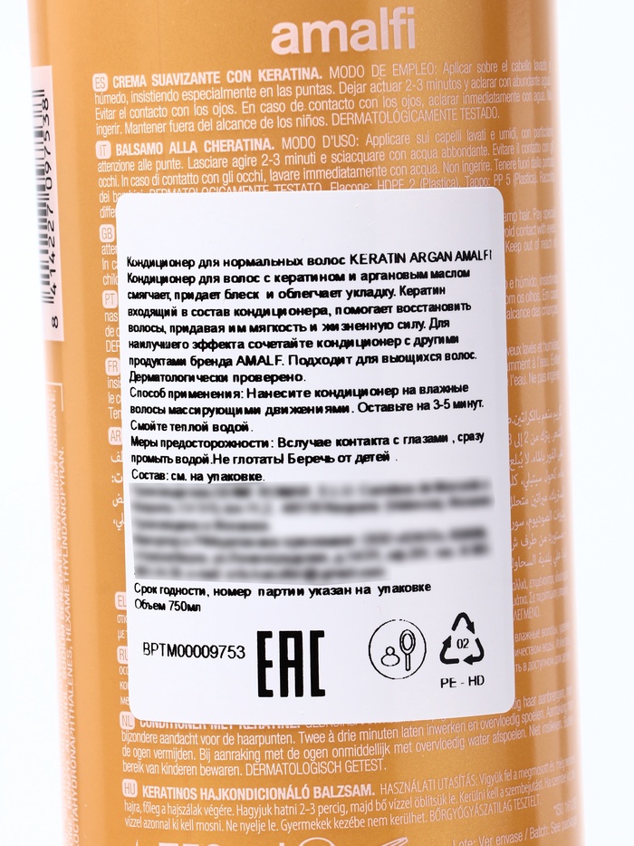- Нанесите кондиционер AMALFI Keratin Argan на влажные волосы, равномерно распределяя по всей длине, уделяя особое внимание кончикам.