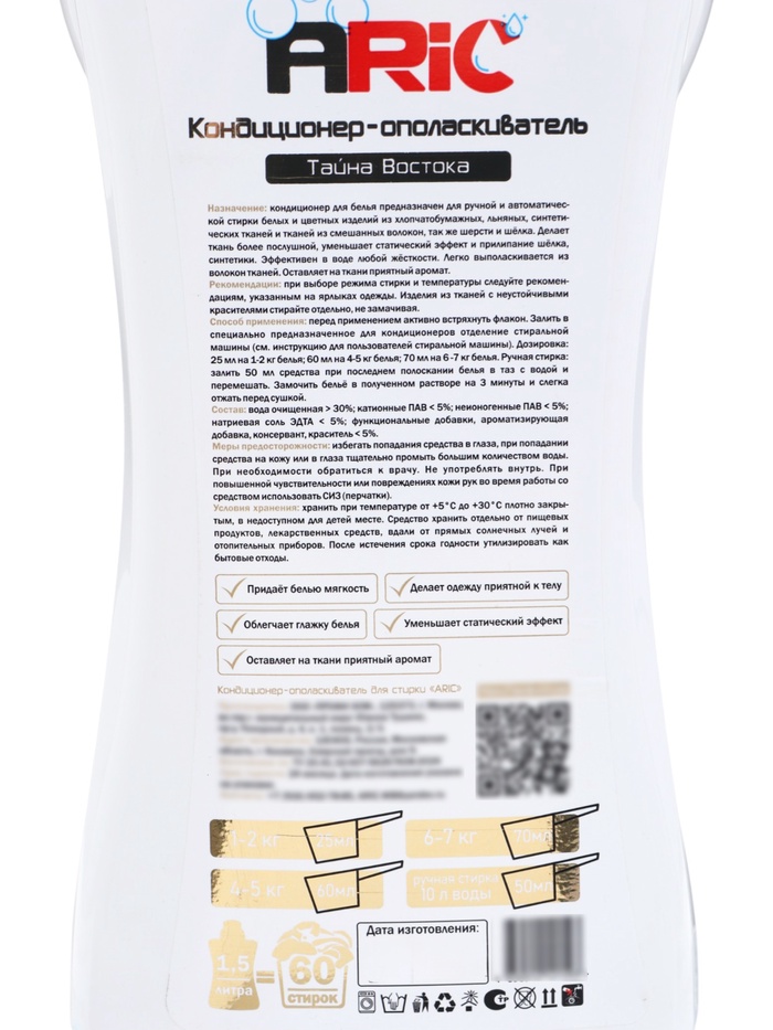 Кондиционер-ополаскиватель ARIC «Тайна востока» — это идеальное завершение стирки, которое делает ваши вещи мягкими, свежими и приятно ароматными каждый день.